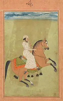 ![]() Equestrian miniature painting of Pir Budhan Shah. Gouache and gold on paper, circa 18th or 19th century | |