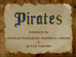 Pirates is a British children's television sitcom. Produced by Childsplay Productions for the BBC, it ran for three series broadcast by Children's BBC between 1994 and 1997, and has not been repeated or commercially released since.[1][2][3] The series revolves around a family of pirates whose ship runs aground in North London, prompting them to take up residence in a council house on Wordsworth Terrace, a nearby street.