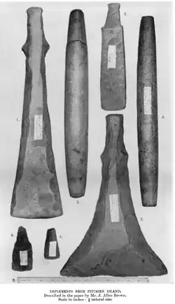 - ^ Brown, John Allen (1900). "Stone Implements from Pitcairn Island". The Journal of the Anthropological Institute of Great Britain and Ireland. 30: 83–88. doi:10.2307/2842620. ISSN 0959-5295. JSTOR 2842620.
