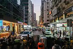 Pitt Street is a street in one of the busiest sections in Yau Ma Tei of Hong Kong. The street is named after William Pitt the Younger,[1][2][3][4][5] prime minister of the United Kingdom, and before Acts of Union 1800, of Great Britain. It hosts several prominent sites including Kwong Wah Hospital[6][7][8][9][10] and the headquarters of Chinese YMCA of Hong Kong.[11][10] Pitt Street spans across three thoroughfares, namely Ferry Street in the west, Waterloo Road in the east and Nathan Road in the middle, which connect the north and south of Kowloon Peninsula. While said to be in Yau Ma Tei, it could be in Mong Kok or Mong Kok Tsui, depending on context. Its name in Chinese character is 碧街, which the character 碧 /pik/, literally greenish jade,[12] is a phonetic approximation of Pitt in Cantonese and 街 a literal translation of street.[13]