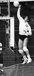 Prior to the 1976 season, Mike Hebert, a former player at the UC-Santa Barbara who was teaching at Pitt, was asked by the university to coach the women's team although he'd never seen women play volleyball. He eventually accepted the part-time job to coach the up-start program for $1,500.[6] Without many collegiate women's team sports in existence in the mid-1970s, Hebert and his team were pioneers who "invented things as [they] went along".[6] Despite this, Herbert guided the Panthers to a fourth-place finish in the EAIAW championships during his first two seasons.[5] Under his guidance, Pitt broke through to national prominence in 1978 winning the EAIAW Championship and advancing to the Association for Intercollegiate Athletics for Women (AIAW) National Large College Volleyball Championships where they finished with a 2–3 record and a 13th place national finish en route to the program's first 40-win season.[7] His part-time position turning full-time in his final season in 1979, which saw the Panthers successfully defend their EAIAW Championship and earn a return trip to the AIWA national championships.[8] During this span he also collected EAIAW Eastern Region Coach of the Year awards at Pitt in 1978 and 1979. Herbert, who also served as an assistant coach for Pitt's men's team for the last two years of his stay in Pittsburgh, then left, citing family reasons, to take the head coaching job at the New Mexico,[9] eventually coaching at Illinois and Minnesota; along the way winning multiple national championships, the national coach of the year award, and earning induction into the American Volleyball Coaches Association Hall of Fame.[6]