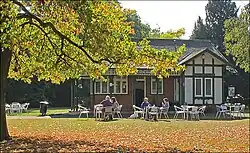 A refreshment kiosk, or small outdoor café on Central Cross Drive, dating from 1903, used to have unusual terracotta dragons on its roof. It is open throughout the year, with shorter hours in winter and is situated in the Long Garden, a stretch of parkland to the south of Pittville Park facing Pittville Lawn. Very near the café, on the corner of Pittville Lawn and Central Cross Drive, originally stood a small spa called Essex Lodge, erected in the 1820s.