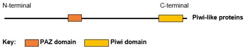 All human Piwi proteins and argonaute proteins have the same RNA binding domains, PAZ and Piwi.[2]