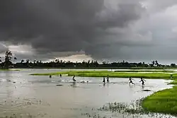 The Sundarbans area is intersected by an intricate network of interconnecting waterways, of which the larger channels are often 1.6 kilometres (0.99 mi) or more in width and run in a north-south direction. These waterways now carry little fresh water as they are mostly cut off from the Ganges, the outflow of which has shifted from the Hooghly–Bhagirathi channels progressively eastwards since the 17th century. This is due to subsidence of the Bengal Basin and a gradual eastward tilting of the overlying crust.[3] The Piyali is heavily silted and most of it has been converted to low cultivated land, leaving only a narrow channel.[4]