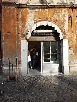In addition to being prepared in families for the feast of circumcision, pizza di Beridde is sold by kosher bakeries such as the Pasticceria Boccione in the Roman Ghetto (in Sant'Angelo rione),[3][7] along with other traditional Jewish sweets, such as ricotta and sour cherry tart and mostaccioli.[10]