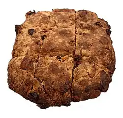 The main ingredients of the bread, which contains neither eggs nor yeast, are flour, sugar, almonds (both whole and ground), raisins, candied fruit (usually candied citron), olive oil or other vegetable oil, white wine and pine nuts.[2][11]