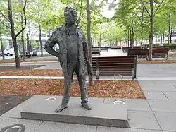 A sculpture representing Jean-Paul Riopelle (Le Grand Jean-Paul) stands in between the trees on the southern part of the square. It was realized by Roseline Granet in 2003.