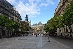 The Place Louis-Lépine is a square in the 4th arrondissement of Paris on the île de la Cité. It is bounded by the Rue de la Cité (east), the Rue de Lutèce (south), the Rue Aubé (west), the Quai de la Corse (north), and is crossed by the Allée Célestin-Hennion. It is named after Louis Lépine, a notable prefect of the Paris police. The Metro station Cité has its only entrance on the square. It is the venue for the Marché aux fleurs Reine-Elizabeth-II, a flower and bird market.