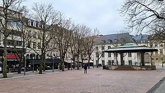Now an integral part of the pedestrian zone, the square is surrounded by numerous cafés and restaurants, all with pavement terraces in the summer months. It has become the city's main centre of activity, attracting locals and visitors of all ages. Visiting bands and music groups present concerts from the central bandstand every summer evening. Every second and fourth Saturday, there is a flea market and in December the Christmas market with several square houses .[2][3]
