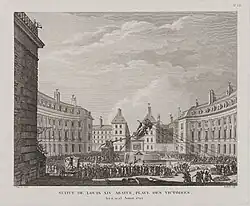 Louis permanently abandoned Paris in 1682, and his imperial ambitions in Europe were deflated by subsequent wars; the Treaty of Ryswick of 1697 was termed "a humiliating disaster for the king" by the military architect Vauban.[5] "During the course of the eighteenth century," Rochelle Ziskin has noted, "critics would suggest that the arrogance of representation at the Place des Victoires had serious political consequences and may have been a factor in provoking war." The grandiose memorial that had begun to embarrass Louis XIV himself[6] would eventually be destroyed in 1792, during the French Revolution.