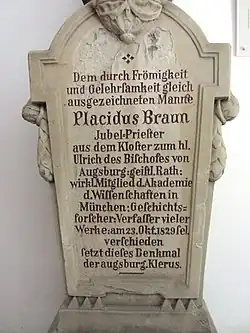 Placidus Braun, O.S.B. (11 February 1756 in Peiting near Schongau, Upper Bavaria – 23 October 1829 in Augsburg, Germany) was a Bavarian Benedictine priest, historian and archivist.