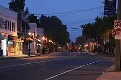 Plandome Road's southern terminus is at its intersection with Northern Boulevard (NY 25A).[1] It then continues northwards, running through the middle of Manhasset's downtown, passing North Hempstead Town Hall and the Manhasset station on the Long Island Rail Road's Port Washington Branch; it intersects Park Avenue at the Manhasset Long Island Rail Road station, on the south side of the track.[1][3][4][5] It then crosses over the Long Island Rail Road, continuing north to the Manhasset–Plandome Heights border at Webster Avenue, at which point it continues north as County Route D92; Town maintenance and ownership ends at this location, and County ownership and maintenance (along with the county route designation) begins.[6][7][8]