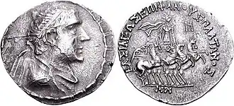 Plato Epiphanes (Ancient Greek: Πλάτων ὁ Ἐπιφανής, Plátōn ho Epiphanḗs, "Plato the God-Manifest") was a Greco-Bactrian king who reigned for a short time in southern Bactria or the Paropamisadae during the mid 2nd century BCE. The style of Plato's coins suggests that he was a relative — most likely a brother since Plato is a middle-aged man on his coins — of Eucratides the Great, whose rise to power is dated to around 170–165 BCE.