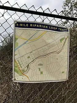 The Playa Vista Riparian Corridor, a popular spot for birdwatching[35] and fitness, surrounds this creek. The cluster of three footpaths and maintenance roads clustered around Bluff Creek, at the base of the Westchester Bluffs, is an wildlife area[35] associated with the larger Ballona Wetlands estuary and watershed.[36]