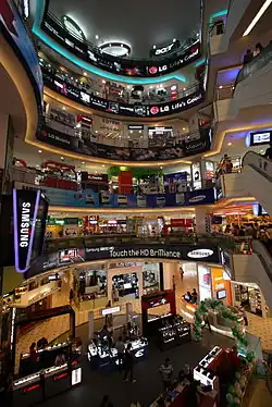 Plaza Low Yat is a shopping centre specializing in electronics and IT products in Kuala Lumpur, Malaysia.[2] In 2009, Plaza Low Yat was named “Malaysia’s Largest IT Lifestyle Centre” by the Malaysian Book of Records.[3] Plaza Low Yat falls under the Low Yat Group, alongside other properties in the city centre such as Federal Hotel, Capitol Hotel, Federal Arcade and BBpark.[4] Plaza Low Yat is widely regarded as the most comprehensive IT centre in Kuala Lumpur, offering various IT products and services from mobile, photography, and gaming, to computing and repairs. Each floor in the centre generally specializes in a particular group of IT products.[5] The centre is notoriously known for the amount of haggling and price comparisons required in order to find good deals, as well as the availability of software and games at relatively cheap prices.[6]