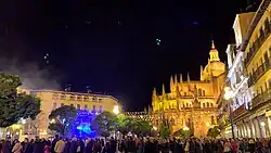 The plaza has been the center of the city for a long time, a meeting place for parties and public rejoicing. In the Plaza Mayor the traditional fairs of San Juan are held until the day of San Pedro, June 29. During these traditional fairs, folk walks, illuminations, and fireworks take place.[4]