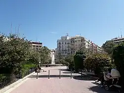 In 1860, the plaza, hitherto known as "Plaza Industrial" was named Plaza de Olavide.[1] By that time, most of the population of the slum of Chamberí lived around the place.[2]