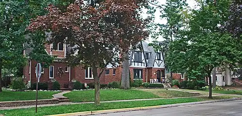 The Pleasant Ridge East Historic District is a primarily single-family home residential district, with only a few commercial properties along Woodward and Main Street. The neighborhoods are remarkably intact and cohesive, with homes representing a variety of architectural styles popular during the 1920s and 1930s, including colonials, English cottages, bungalows and Craftsman structures. The district's largest homes tend to be located along the block or two closest to Woodward, with the ones most modest in scale farther away, near the railroad line.[2]