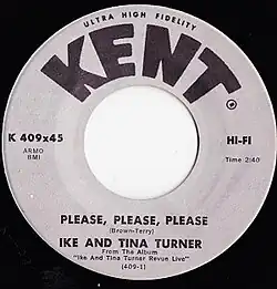 Ike & Tina Turner released a live version of "Please, Please, Please" as a single on Kent Records, which was included on their 1964 album Ike & Tina Turner Revue Live.[16] They also performed the song on The Big T.N.T. Show in 1965. After their resurgence on the charts, Kent reissued the single in 1970. It reached No. 45 on Record World's R&B chart.[17]