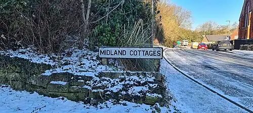 The station originally had two platforms[8] with a typical MR country station building on the western (northbound) side.[9][10] Unusually the signal box was on one of the platforms. By 1950 all trace of the southbound platform had been erased.[11]