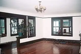The front door opened directly into the living room, which in turn connected to the dining room. Often, the two rooms were separated only by a half wall.
