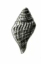 (Original description) The small, subfusiform shell has a rather short pointed spire and contains about 5 whorls. The large body whorl is somewhat inflated. The earlier whorls are nearly flat. The surface is sculptured with numerous alternating larger and smaller spiral threads crossed by fine wavy lines and by irregularly spaced oblique ribs, about twenty in number on the body whorl. The ribs are strongest at the shoulder, gradually disappearing both posteriorly and anteriorly. The shell is somewhat excavated behind the shoulder. The aperture is narrow. This form is from the Woodstock stage.