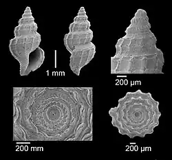 | Shel land protoconch of Pleurotomella vaginata (syntype at the Smithsonian Institution) | |