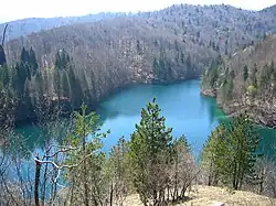Scientists have so far identified 109 species in the area of the national park, of which 75 species are endemic.[19] A great number of these plants and species are protected by law. Within the national park area 55 different species of orchids occur.[9] The plant diversity creates an interesting interplay of colours that change with the seasons. The national park has an area of 29,842 hectares, of which some 22,308 hectares consists of forests (74.75 percent), 6,957 hectares are meadows (23.31 percent) (mainly in village areas), and 217 hectares (0.72 percent) are water areas.[5] A unique area is the forest of Čorkova uvala, a 79.50 ha virgin forest in the northwestern part of the park. Some of the beech and fir trees in this area of the park are up to 700 years old.[11][20]