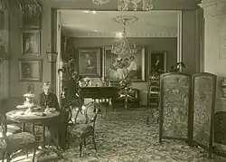 Moritz G. Melchior, the owner of Moses & Søn G. Melchior, acquired the building in 1855. He lived with his family on the second floor and also ran his company from the premises. The Melchior family were among Hans Christian Andersen's closest friends. He stayed with the family from 13 March until 21 May 1870 in their residence on Højbro Plads, where he wrote What the Whole Family Said,[18] and the Melchiors also hosted the celebration of his 70th birthday. Andersen usually visited the family for dinner on Thursdays. Other friends of the family, who would often also attend the Thursday dinners, included the painters Carl Bloch and Frederik Christian Lund, poet and museum administrator Carl Andersen and representatives of the press such as Dagbladet editor C. St. A. Bille, journalists Robert Watt and P. "Cabiro" Hansen and publisher and editor of Fædrelandet ('The Fatherland') Carl Ploug.[19]
