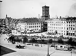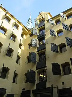![]() Ploug House with the spire of the former St. Nicolas' Church in the background | |
