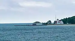 A lighthouse was built on the island in 1848 and abandoned when it was decided to move it to nearby Pilot Island in 1858. The island was re-colonized in 1895–6, when both a lifesaving station on the northeast corner and a set of range lights on the western side were built. The lifesaving station operated from 1895 to 1991, before being moved to nearby Washington Island, while the range lights were automated in 1969 and remain an active aid to navigation.[6]