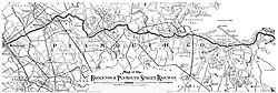 The P&B was established in 1888 as a trolley company in Plymouth and Kingston, Massachusetts. At its height, trolleys operated as far as Pembroke and Sagamore Beach. The company operated trolleys up until 1928, when they switched to solely operating buses in and around the South Shore.[1]