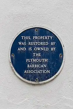 Plaque applied to buildings restored by the Plymouth Barbican Association