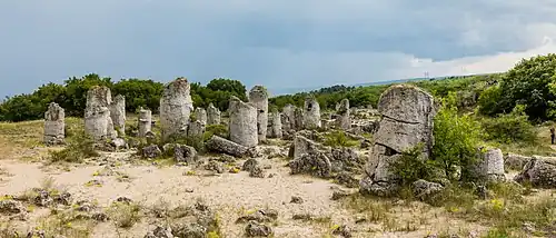 Pobiti Kamani (Bulgarian: Побити камъни, "planted stones"[1]), tubular concretions formed around "rising methane-bearing fluid plumes", is a desert-like rock phenomenon located on the north west Varna Province border in Bulgaria.