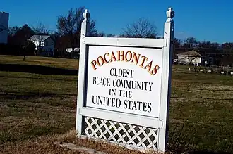 In the 19th century, Pocohontas Island became a notable freedom colony,[4] the first predominately free black settlement in the state and, by mid-19th century, one of the largest in the nation (although enslaved people also lived on the island, and some free blacks owned slaves).[5] In 1860 slightly more than half of Petersburg's population was black, and 3,224 or one-third of those people were free; they constituted the largest free black population of the time. During the 20th century, the island's population declined as people moved north in the Great Migration. In 1975 residents secured renewed residential zoning to protect their neighborhoods from industrial development proposed by the city.[5]
