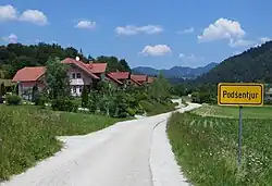 Podšentjur (pronounced [pɔtʃɛnˈtjuːɾ] or [pɔtʃənˈtjuːɾ]; German: Sankt Georgen[2]) is a settlement on the right bank of the Sava River in the Municipality of Litija in central Slovenia. The area is part of the traditional region of Lower Carniola. It is now included with the rest of the municipality in the Central Sava Statistical Region.[3]