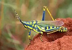 Poekilocerus is a genus of grasshoppers in the family Pyrgomorphidae and the monotypic tribe Poekilocerini. Species are found in the northern half of Africa, and in Southwest and South Asia, often in arid or semi-arid areas.[2][3][4]