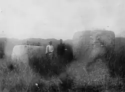 The lids next to the kalambas are also decorated, some with small protruding carvings of monkeys and lizards around their edge.[1] Excavations at the site carried out in 2008 by Dwi Yuniawati have shown that kalambas served as family burial chambers containing a minimum of ten people. The kalambas probably did not house the remains of the entire tribe, but were reserved for the elite. The remains show traces of tooth mutilation and cremation.[2]