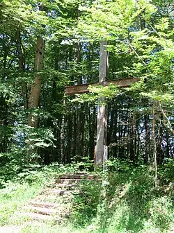 Polica is the site of two known mass graves from the period immediately after the Second World War. The Bliska Vas nad Polico Mass Grave (Slovene: Grobišče Bliska vas nad Polico) lies on a wooded slope below a path from the hamlet of Bliska Vas to Andrejc Hill. It contains the remains of Slovene civilians from the area and from the Moste neighborhood of Ljubljana that were murdered in the vicinity of an encampment of the Partisan Lower Carniola Detachment.[7] The Polica Mass Grave (Grobišče Polica) lies in the Bukovje Woods on the western slope of Vrh and Log hills, north of the hamlet of Bliska Vas, near the former encampment of the 2nd Unit of the Partisan Lower Carniola Detachment. It contains the remains of over 20 Slovene civilians from Ljubljana that were accused of espionage and liquidated.[8]