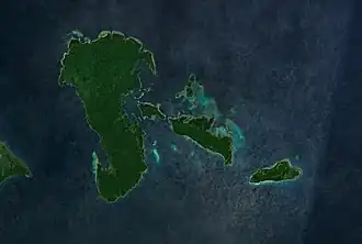 The Polillo Islands is a group of about 27 islands in the Philippine Sea lying about 25 km (16 mi) to the east of the Philippine island of Luzon. It is separated from the mainland Luzon Island by the Polillo Strait and forms the northern side of Lamon Bay. The islands are part of the province of Quezon in the Calabarzon region of the Philippines.[2][3] The combined land area of all the islands is about 875 square kilometers making Polillo islands even larger than the island city-state of Singapore.