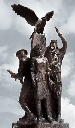 Four humble toy soldiers, each painted bronze and glued back-to-back atop a two-pence piece, created by Dr. Andrzej Meeson-Kielanowski, provided the inspiration behind the monument's design. It was decided that the statue design would be based on the concept and would comprise four sculptures of typical members of the main branches of the Polish Armed Forces: the Air Force, the Army, the Navy and the Polish Underground Home Army. The airman is a Polish pilot from RAF 303 Squadron during the Battle of Britain; the Underground figure is a woman courier wearing civilian clothes; the army is represented by a typical Polish soldier from the battle of Monte-Cassino; the seaman is a crew member of the Polish destroyer Błyskawica. In addition, the figures are ‘combined’ with an eagle uniting all four under its outspread wings.[2]