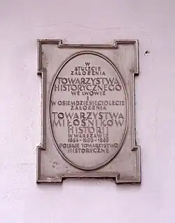 Founded in 1886 in Lwów by Ksawery Liske as a local society, its scientific journal became the Kwartalnik Historyczny, which was first published in 1887.[1] in 1924 it became a Poland-wide organization dedicated to advancing the knowledge and studies in history of Poland.[1] In 1939, PTH had 12 branches: Brest, Grodno, Katowice, Kielce, Kraków, Lublin, Lvov, Łódź, Poznań, Przemyśl, Warsaw, and Vilnius.[1] After World War II, the society was moved to Kraków on January 8, 1947, and to Warsaw on September 28 of that year.[1]