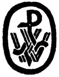 During the war, part of the Polish population unequivocally associated the graphic design of the Kotwica symbol with the printer's mark of Polish Publishing House.[18] The similarity – even the identity[18] – of both symbols also caught the attention of the Gestapo, who conducted a raid on the publishing house and ordered the obfuscation of the printer's mark in all books intended for distribution.[13]