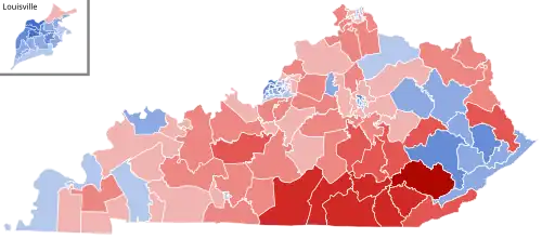 | 2020 | Andy Beshear (D) | Jacqueline Coleman (D) | Michael Adams (R) | Daniel Cameron (R) | 28R, 10D[aa][19] | 62R, 38D[y] | Trump/ Pence (R) | ||||||