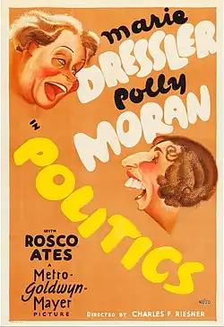 Politics is a 1931 American pre-Code comedy film directed by Charles Reisner and written by Wells Root and Robert E. Hopkins. The film stars Marie Dressler, Polly Moran, Roscoe Ates, Karen Morley, and William Bakewell. It was released on July 25, 1931 by Metro-Goldwyn-Mayer.[1][2]