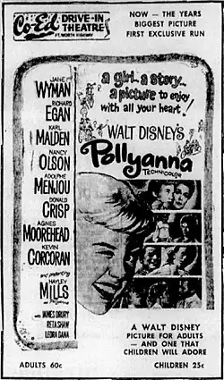 Jerry Griswold wrote in The New York Times on October 25, 1987: "An attempt was made to resuscitate Pollyanna in 1960 when Walt Disney released a movie based on the book. Time, Newsweek, and other major reviewers agreed that such an enterprise promised to be a disaster – a tearjerker of a story presented by the master of schmaltz; what surprised the critics (their opinions were unanimous) was that it was his best live-action film ever. But few had reckoned the curse of the book's by-then-saccharine reputation. When the movie failed to bring in half of the $6 million that was expected, Disney opined, 'I think the picture would have done better with a different title. Girls and women went to it, but men tended to stay away because it sounded sweet and sticky'".[9]