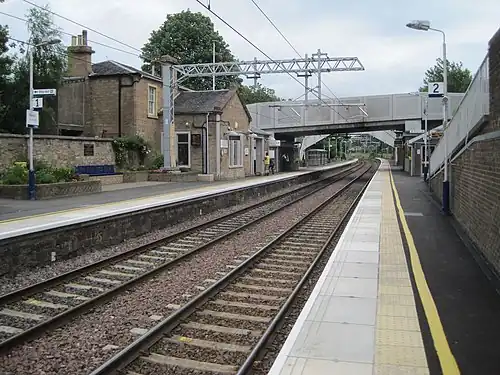![]() Polmont station in 2018, following bridge rebuilding and electrification works | |||||