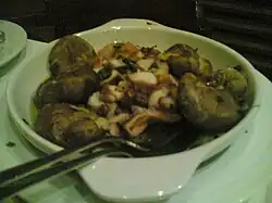 Polvo à Lagareiro is a Portuguese dish based on octopus, olive oil, potatoes (batatas a murro), grelos and garlic. Its origin is uncertain though it is a common dish in Trás-os-Montes Province. It is often served on Christmas Eve.[1][2][3]