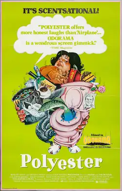 Polyester was filmed in Waters' native Baltimore, Maryland, like all of his previous films. It featured a gimmick called Odorama, whereby moviegoers could smell what they were viewing on-screen with special scratch-and-sniff cards (a stylistic tribute to the work of William Castle, whose films typically featured attention-grabbing gimmicks).