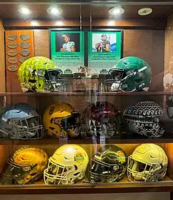 Display at the Polynesian Football Hall of Fame for 2023 high school award winners Dylan Raiola and Isaac Wilson